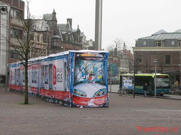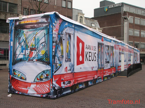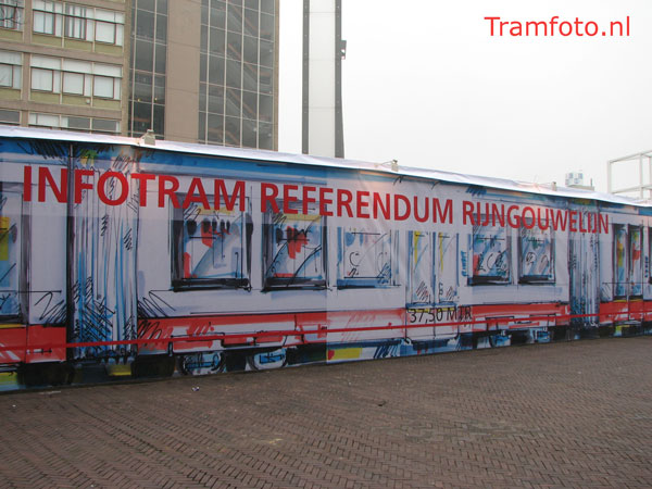In verband met het referendum op 7 maart in Leiden over de Rijn-Gouwelijn werd een promotietram gemaakt.